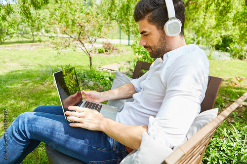 Freiberufler bei Projekt Planung am Laptop im Garten