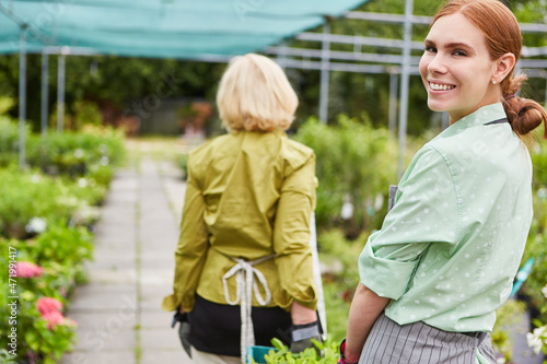 Gärtnerin in der Ausbildung transportiert Pflanzen