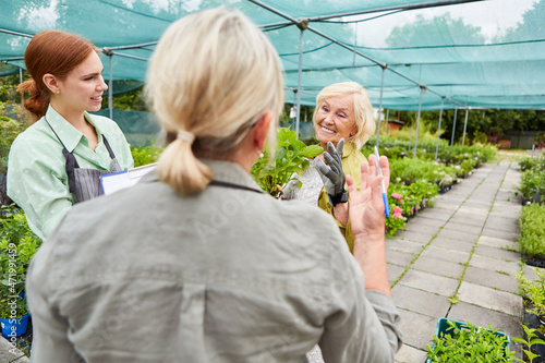 Three women as a nursery team doing an inventory
