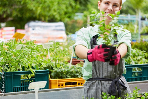 Gardener trainee with a flower on special offer