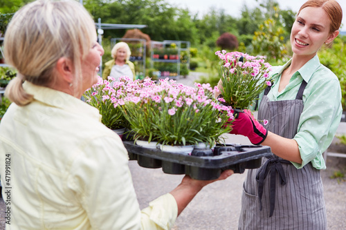 Zwei Frauen als Gärtner Team im Gartencenter