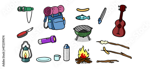 Clipart Icon Set zum Thema Camping als Malvorlage