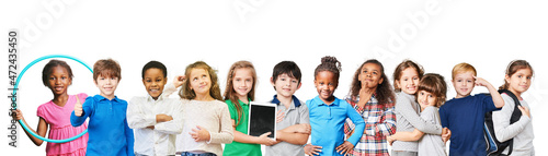 Panorama mit vielen aktiven Kindern als Bildung Konzept