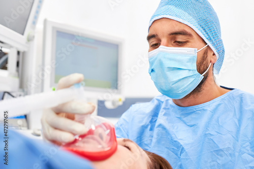 Anästhesist bei der Betäubung und Beatmung von Patient