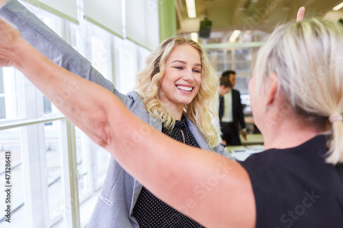 Zwei Business Frauen freuen sich über das Wiedersehen