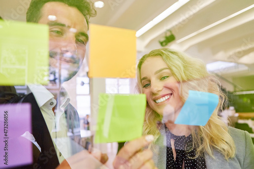 Geschäftsleute beim Brainstorming mit Haftnotizen