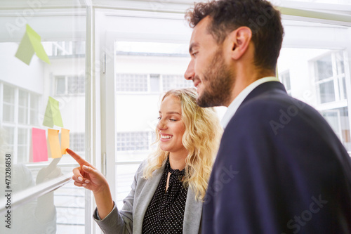 Panorama aus Silhouetten von Geschäftsleuten vor bunten Business Portraits