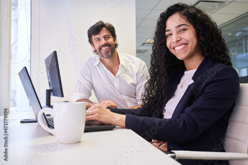 Geschäftsfrau als Trainee zusammen mit eine Kollegen