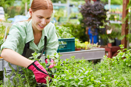 Junge Gärtnerin bei der Pflege von Pflanzen und Blumen