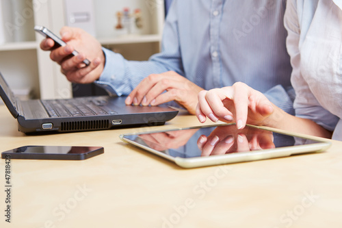 Hände am Tablet Computer und Smartphone