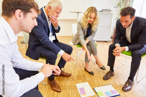 Gruppe Geschäftsleute im Kreis bei Business Workshop