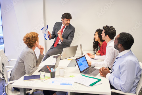 Manager als Berater zeigt auf Diagramm am Computer Monitor