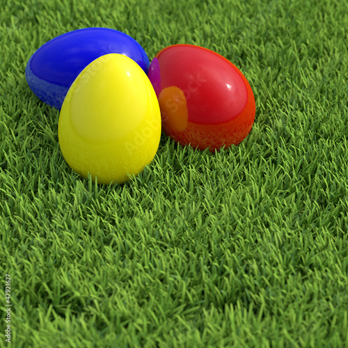 Bunte Eier auf Wiese zu Ostern als Hintergrund