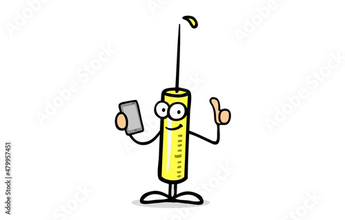 Spritze mit Smartphone und Coronavirus Impfstoff