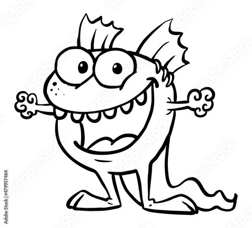 Schwarz weiß Monster als Ausmalbild Vorlage