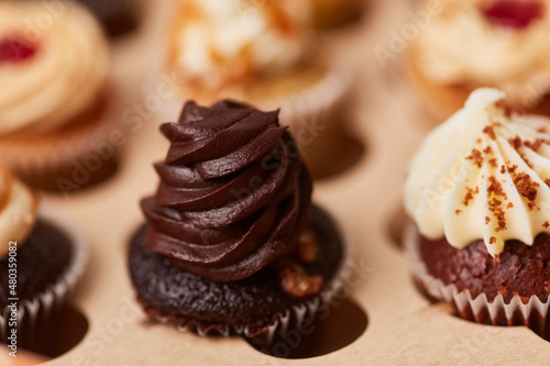 Cupcake with chocolate cream between different muffins