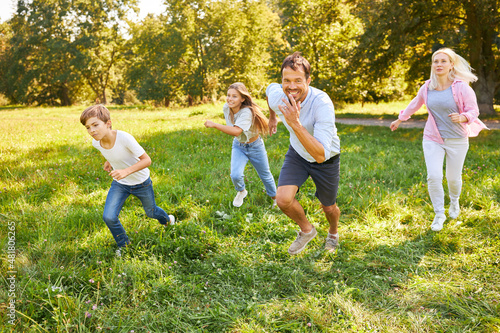 Sportliche Familie hat Spaß beim Wettlauf im Park