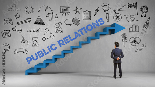 Geschäftsmann betrachtet Schriftzug Public Relations