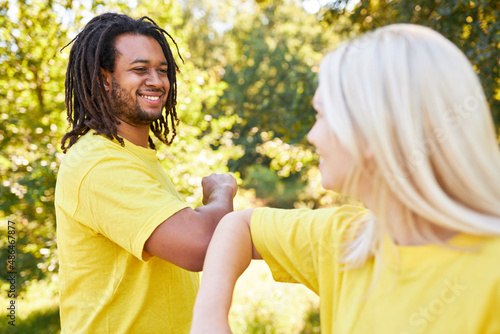 Junge Leute bei Begrüßung mit Fist Bump für Partnerschaft
