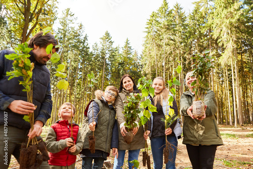 Familie und Kinder zusammen bei Aufforstung Aktion