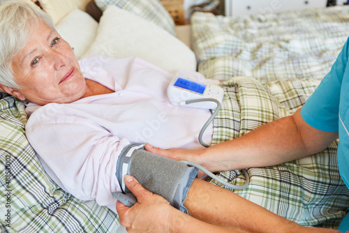 Krankenschwester gibt Seniorin eine Spritze in den Unterarm