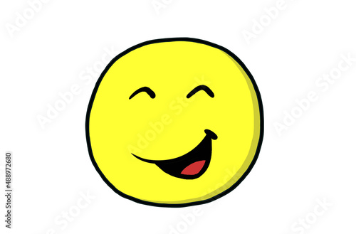 Gelbes Gesicht als rundes Emoticon beim Lachen