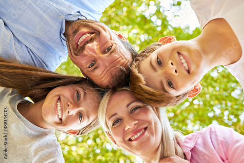 Parents and children as a happy family in summer