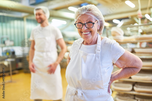 Glückliche ältere Frau als Bäckerei Chefin mit Erfahrung