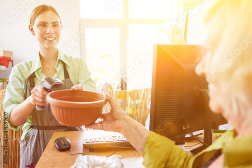 Scanner scannt Artikelnummer an Kasse vom Baumarkt