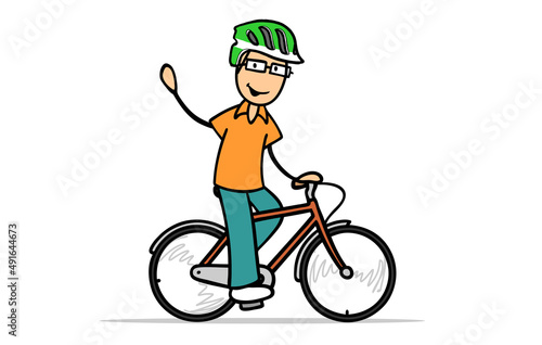 Cartoon man riding a bike wearing a bicycle helmet