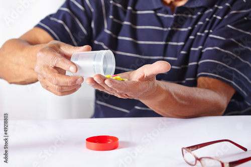 Seniorenhände mit Medikamenten