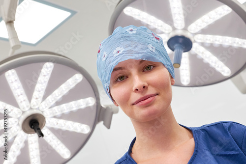 Junge Frau als Ärztin oder OP-Schwester vor der Operation