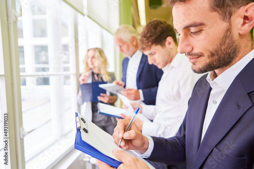 Panorama aus Silhouetten von Geschäftsleuten vor bunten Business Portraits
