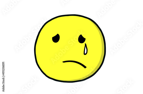 Gelbes rundes Gesicht als Emoticon schaut traurig