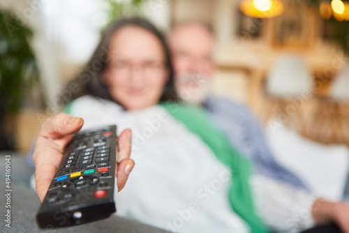 Senioren Paar als Zuschauer mit TV Fernbedienung