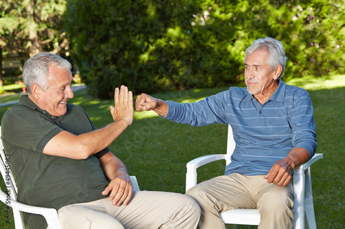 Paar Senioren hält Daumen hoch im Schwimmbad