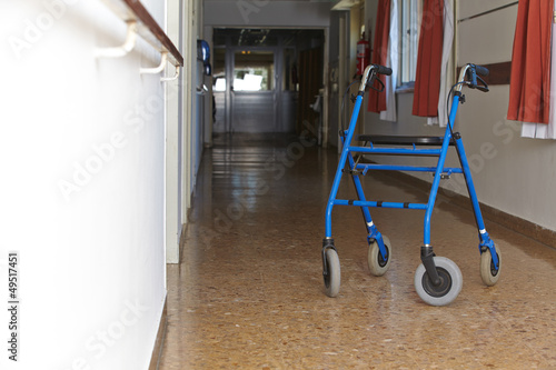 Rollator im Gang einer Klinik