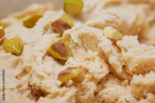 Selbstgemachtes Vanilleeis mit Nektarinen-Variegato als Hintergrund Textur