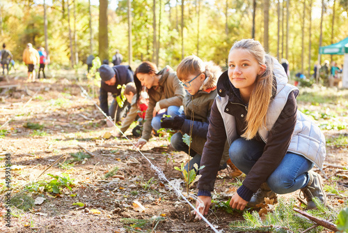 Kinder und Familie als Freiwillige beim Baum pflanzen
