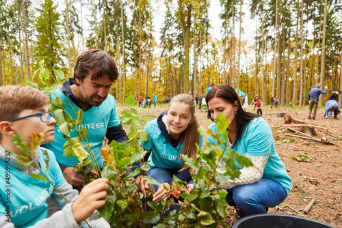 Familie mit Baum Setzlingen zur Aufforstung im Wald