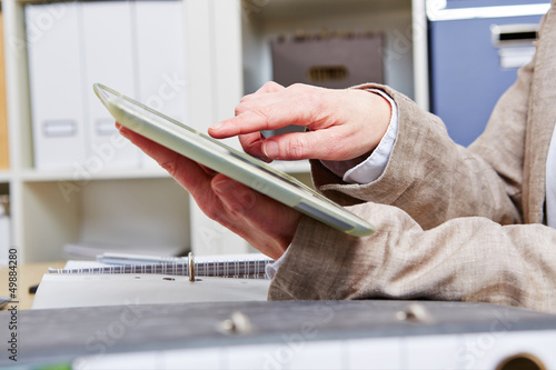 Geschäftsfrau benutzt Tablet Computer im Büro