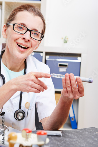 Gestresste Ärztin mit Kopfschmerzen im Büro