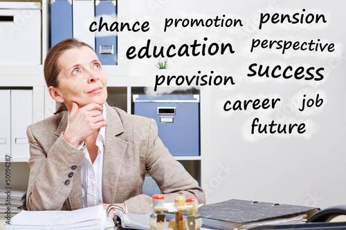 Senior business woman thinking about career