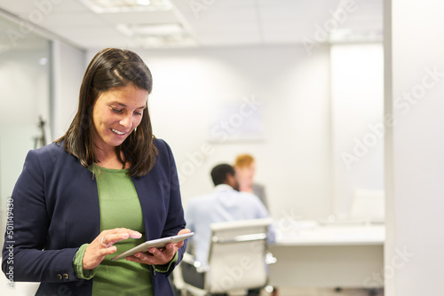 Geschäftsfrau bei der Recherche mit dem Tablet Computer