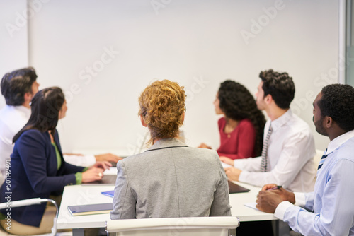 Business Frau als Referentin am Whiteboard in einer Schulung