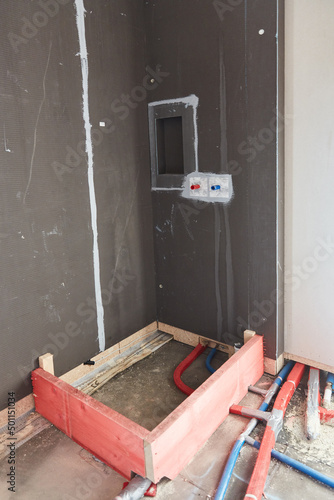 Duschzelle für Dusche im Badezimmer bauen bei Neubau