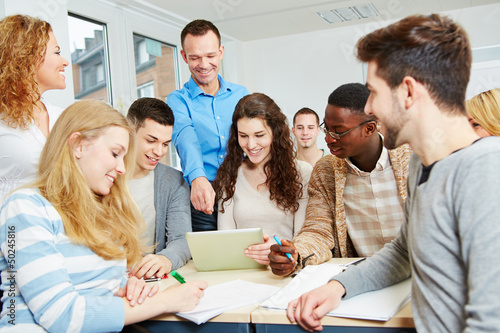 Zwei Berater oder Dozenten vor Tafel mit Muskel Armen als Business Konzept