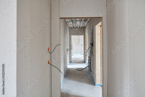 Flur oder Korridor als Durchgang in Haus beim Neubau