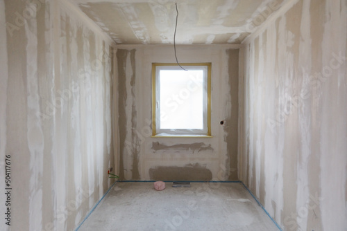 Fenster in kleinem Raum bei Spachtelarbeiten bei Hausbau