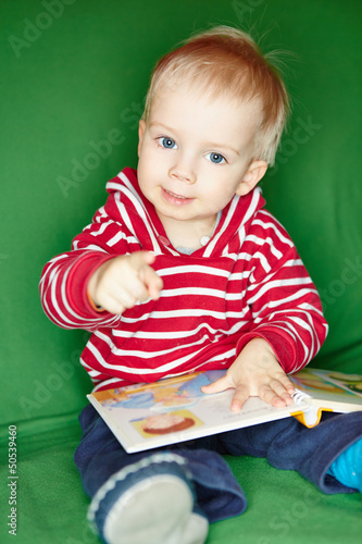 Junge schaut Bilderbuch an